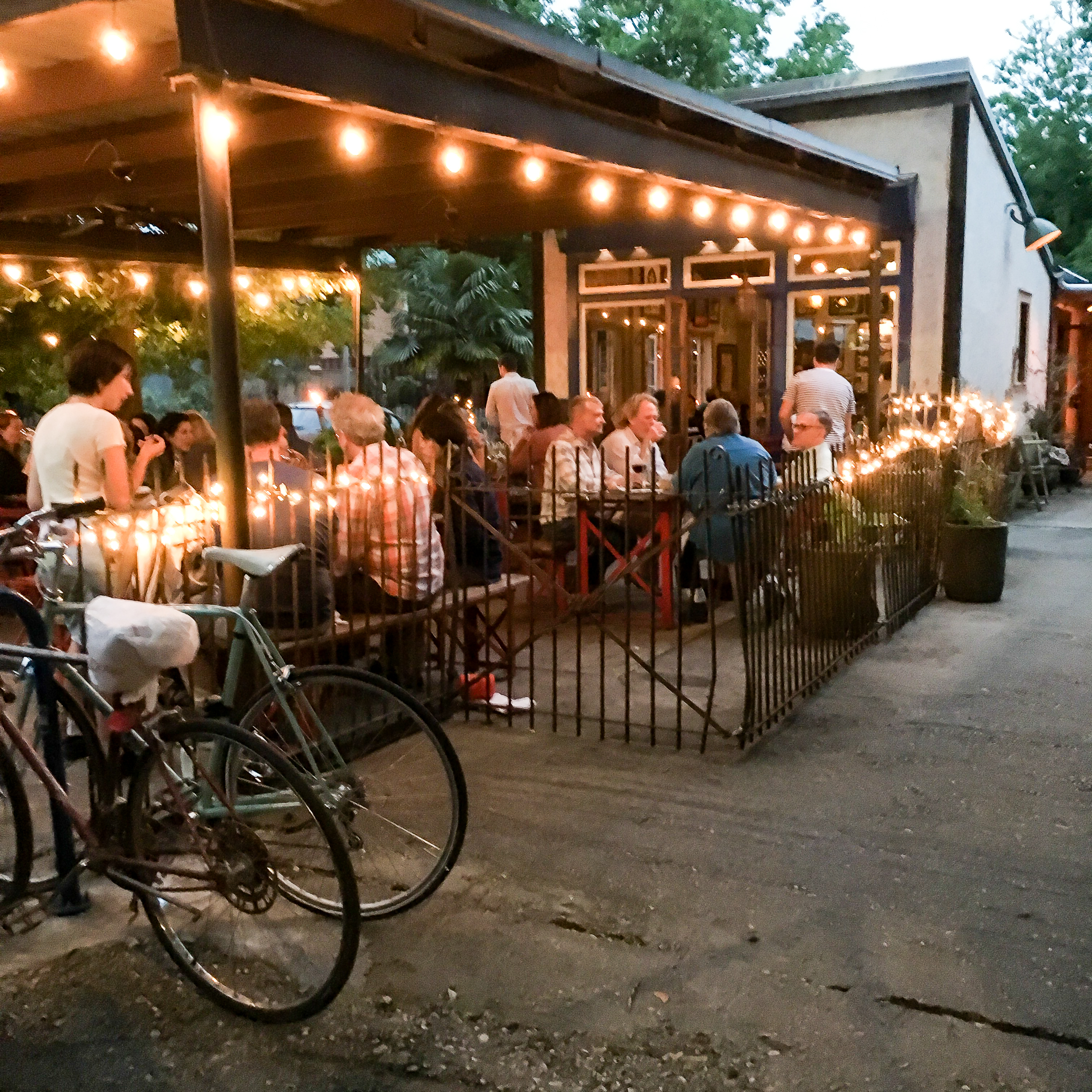 This is a laid back wine bar, a place you can hang out for hours. They have a large outdoor patio with a stage and live music. At night it becomes so romantic because of all the hanging outdoor lights. They serve food too!